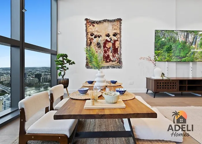 Das Apartment Tokyo Calm Elegant Cbd Escape At Queens Wharf Brisbane empfängt Reisende im Herzen von Brisbane, in 1 km Entfernung von AWAY der Queensland Art Gallery | Gallery of Modern Art entfernt. Die Apartments empfängt seine Gäste mit einem Dampfbad, einem Jacuzzi und einer Sauna und liegt nur wenige Schritte entfernt vom Brisbane City Botanic Gardens.